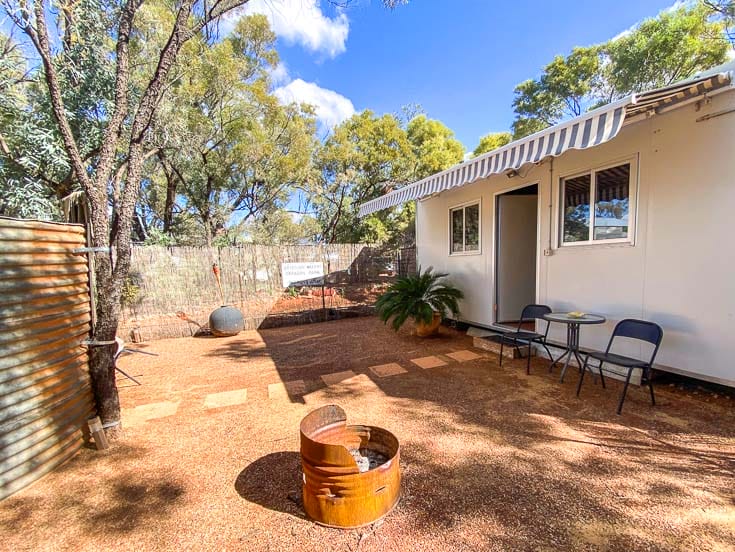 For those feeling like a bit of a splurge or who are in town a little longer, you can book into the private cabin. This cabin has its very own private courtyard, which features an outdoor bath that you can fill with warm artesian bore water. The courtyard also has a fire pit, BBQ and outdoor table and chairs.