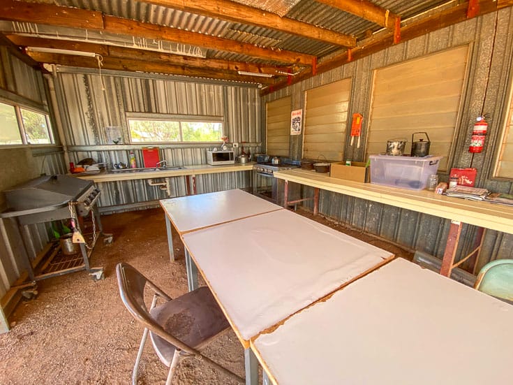 There is a fairly rustic outback-style camp kitchen for guests to use, which includes everything you need to whip up some fancy meals. Amenities include a BBQ, microwave, stovetop, kettle, toaster, loads of bench space, and tables and chairs.