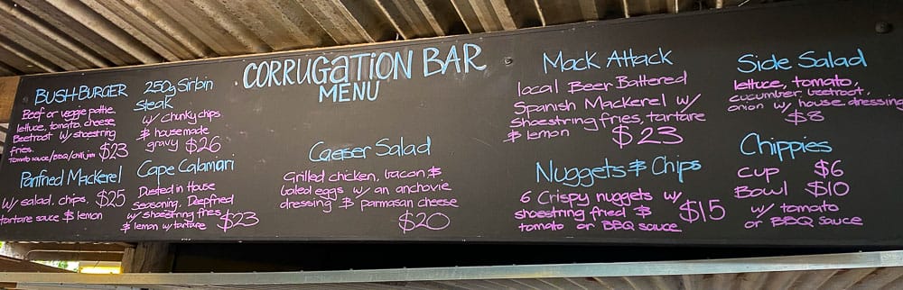 The Corrugation Restaurant and Bar is open daily serving breakfast, lunch and dinner. Even if you don’t stay at Punsand Bay, it’s well worth coming up here for a meal or drink at some stage. There is a range of meals on offer from burgers, steak, fish, wraps and sandwiches. The meals are delicious and well priced, considering the location.