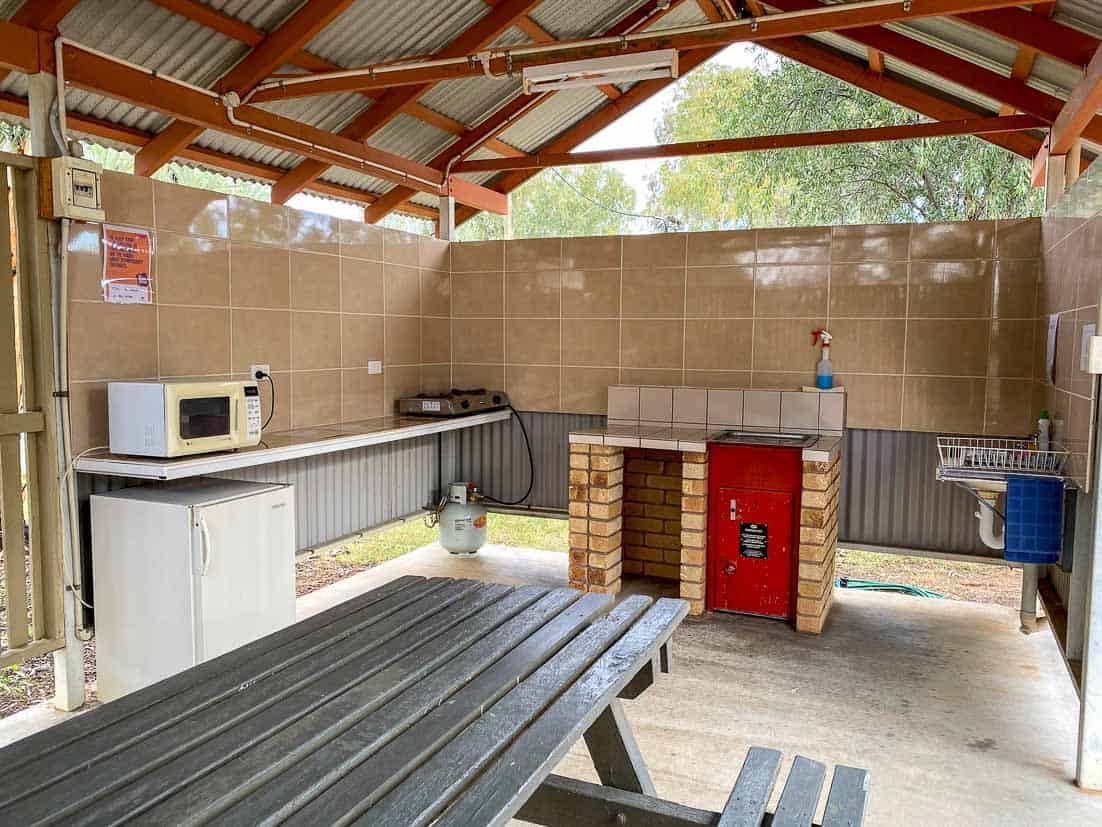 Cunnamulla Tourist Park provides two awesome camp kitchens – I was very impressed with these. They include a cooker, kettle, toaster, microwave and fridge. The main camp kitchen even comes with plates, bowls, mugs and cutlery etc.